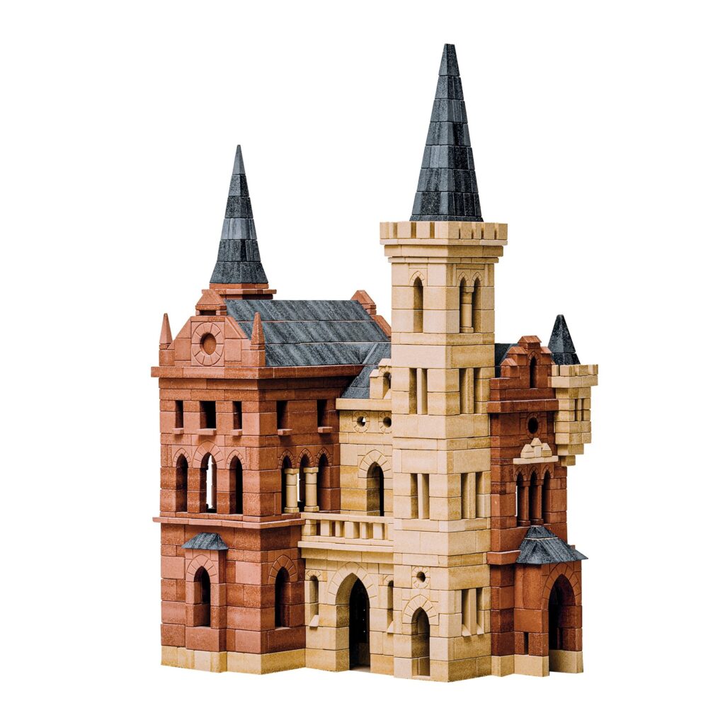 "The birth of miniature building bricks, later called 'Ankerstones', took place in 1863 when the pedagogue Jan Daniel Georgens (1823 - 1886), a pupil of Friedrich Fröbel, marketed brick-building boxes developed by him. The stones were cast from a kind of cement. Sample books appeared with stone shapes such as the cube and an elongated stone. 10 years later, these were already extended to (Romanesque) arches, roof stones and spires."