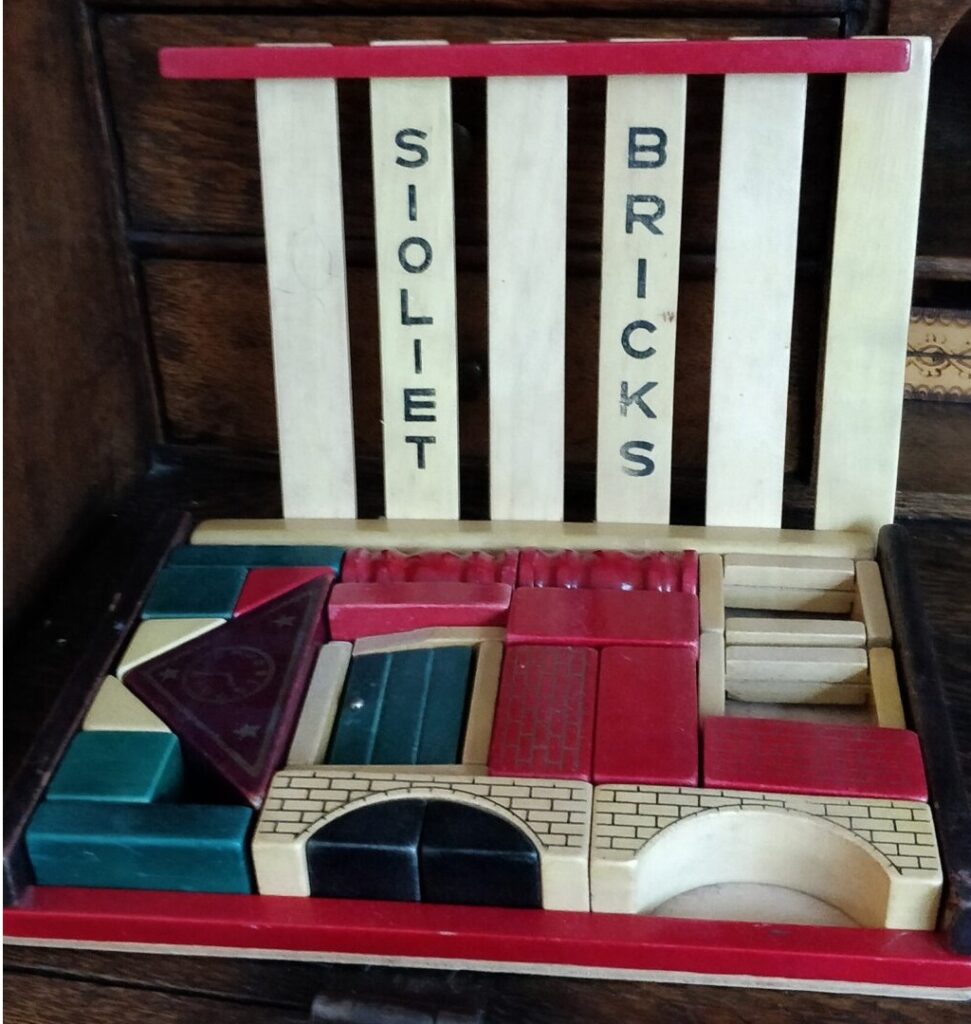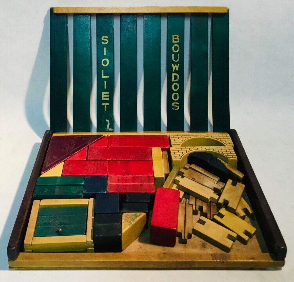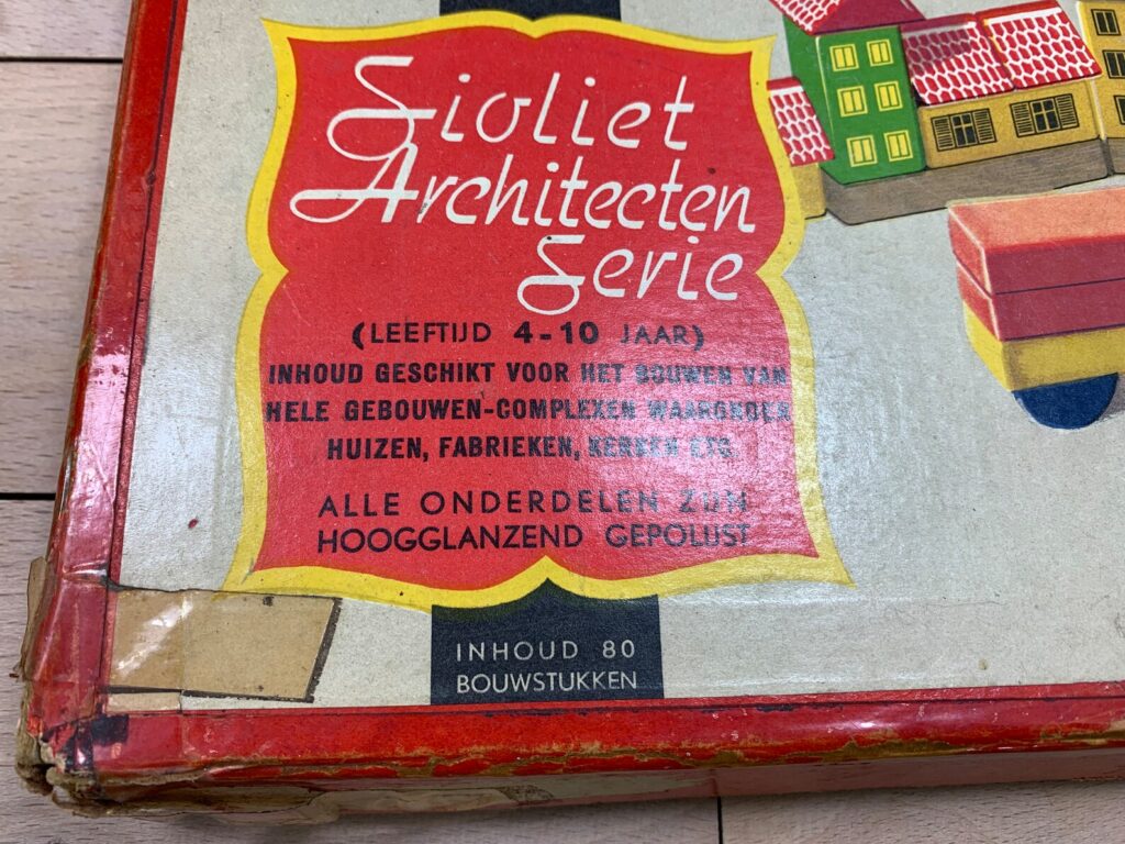 'Sioliet' is the name of the process that SIO has (further) developed to color wood with aniline dyes. The toys that were similarly colored were called 'siolieten' by Sio, as a kind of 'line' of toys. During 1950s, the toys are called differently, like Sio Montage. 'Siolieten' exists as an important part of the manufacturing process. (Source.)