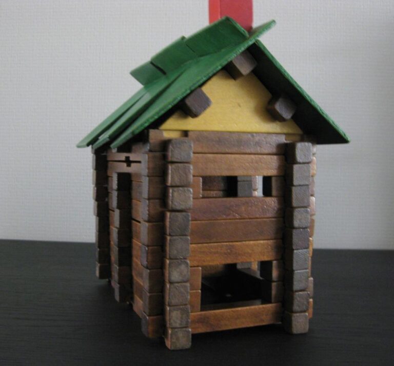 Funny fact, you would expect a constant height build up, based on interlocking cut-outs, but here the wooden logs are higher then twice the cut out, so building feels a little loosely.