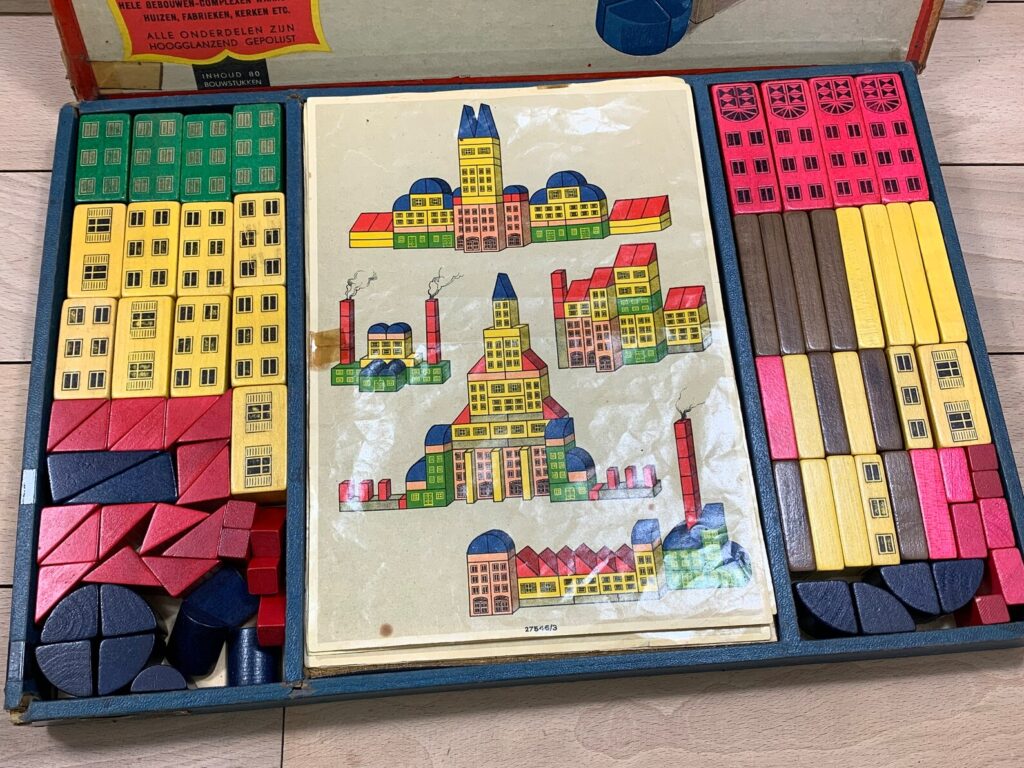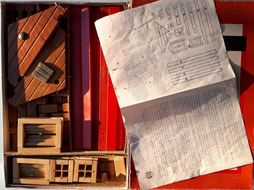 Recently also found 2 'bouwdozen', a green (ebay) & white (product #1011) (etsy) version. Both boxes, also contain similar wooden door & window styles, like used in the other series.