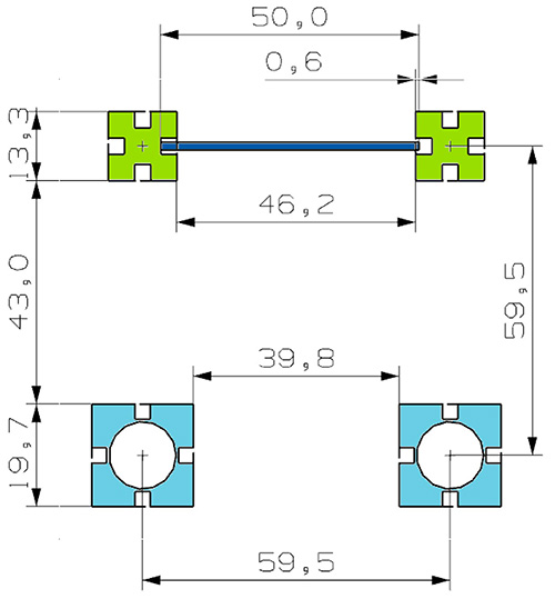 The nominal pitch distance between columns: 59.0 to 59.5 mm.